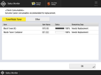 (Status Monitor), the Status Monitor screen is displayed, allowing you to check the toner level or other status indications.