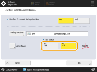 In order to back up fax documents, it is necessary to register settings such as the storage location and file format in advance.