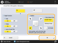Press <Function Settings>  <Common>  <Print Settings>  <Forced Print of Recognition Information>.