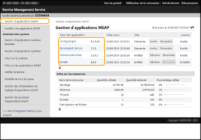 Cliquez sur [Gestion d'applications MEAP] puis sur l'application dont vous souhaitez gérer la licence.