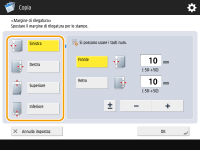 Se si immette un numero inferiore a 0, il margine viene impostato sul lato opposto rispetto alla posizione specificata al passo 4. Avvalersene se si desidera restringere la larghezza del margine copiando un originale che ha già dei margini.