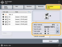 È possibile verificare la quantità residua di materiale di consumo tramite IU remota. Verifica dello stato della macchina |