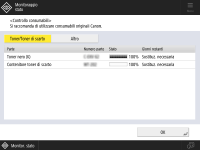 (Monitoraggio stato/Annulla), viene visualizzata la schermata Monitoraggio stato, che consente di verificare il livello del toner o altre indicazioni di stato.