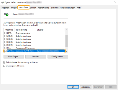 Vergewissern Sie sich, dass für den Drucker der richtige Port ausgewählt ist.
