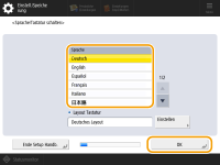 Drücken Sie <Sprache/Tastatur schalten>, wählen Sie eine Sprache in der Liste, und drücken Sie <OK>.