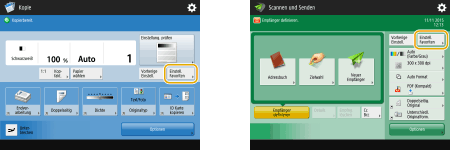 Sie können die Einstelltasten ändern, die auf dem Grundfunktionsbildschirm (für Kopieren, Faxen und Scannen) angezeigt werden. Sie können auch für jeden Benutzer einen anderen angepassten Grundfunktionsbildschirm anzeigen.