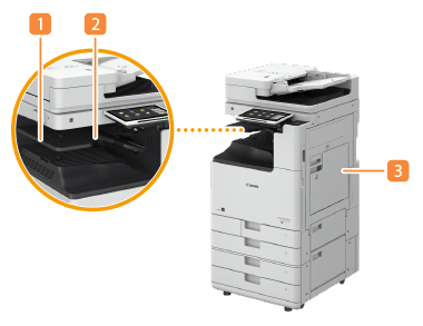 Sie können sowohl das Internes Zusatzausgabefach M als auch Kopienauffang T installieren, um ein zusätzliches Ausgabefach hinzuzufügen. Dies ist eine praktische Möglichkeit, um für jede Funktion ein anderes Ausgabefach sowie die Kopier-, Druck- und Fax-Funktionen zu nutzen. |