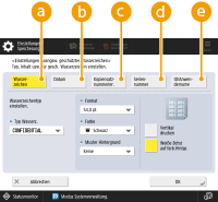 Drücken Sie <Einstellen> für die Funktionen, für die Sie das geschützte Wasserzeichen ("Secure Watermark") verwenden möchten. Wenn Sie <Einstellen> für <Zugang zu gespeicherten Dateien> auswählen, wird das geschützte Wasserzeichen ("Secure Watermark") in den gespeicherten Dateien eingebettet, sobald sie gedruckt werden.