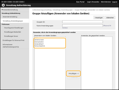 Klicken Sie auf [Anwenderverwaltung]  [Verwaltung Authentisierung]  [Verwaltung Anwendergruppe].