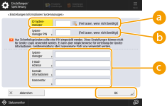 Drücken Sie <Einstellungen Verwaltung>  <Anwenderverwaltung>  <Einstellungen Informationen Systemmanager>.