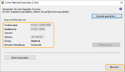 Vergewissern Sie sich, dass dieses Gerät ausgewählt ist, und klicken Sie dann auf [Beenden].