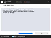 Starten Sie das Gerät nach Ende der Einrichtungsanleitung neu, um die festgelegten Einstellungen anzuwenden. ![]() ![]() Drücken Sie <OK>, um das Gerät neu zu starten. |