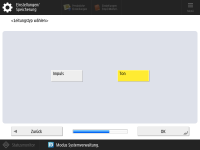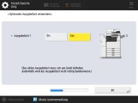Wenn der Bildschirm <Optionales Ausgabefach verwenden> erscheint, geben Sie an, ob Sie zusätzliche Ausgabefächer verwenden möchten. ![]() Wenn der Bildschirm <Einstellungen Datum/Zeit> erscheint, fahren Sie mit Schritt 7 fort. ![]() Drücken Sie <Ein>, um das Ausgabefach zu aktivieren, oder drücken Sie <Aus>, um es zu deaktivieren. Drücken Sie dann <OK>. Die angezeigten Elemente unterscheiden sich je nach den installierten Optionen. | |
