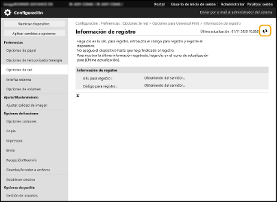 Haga clic en [Opciones de red]  [Opciones para Universal Print].