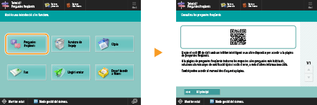 Si premeu <Preguntes freqüents>, apareixerà un codi QR. A continuació, podeu obrir la pàgina de preguntes més freqüents (FAQ) escanejant el codi QR des d'un dispositiu mòbil com un telèfon intel·ligent o una tauleta.