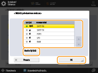 Valitse <Määritä palvelunimen mukaan>, jos haluat käyttää palvelun nimiä määrittäessäsi portteja, joissa käytetään IPSec:iä. Valitse palvelu luettelosta, valitse <Huolto Kyllä/Ei> -asetukseksi <Kyllä> ja valitse sitten <OK>.