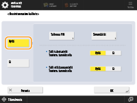 Sisäänkirjausikkuna saadaan näkyviin, kun toiminto käynnistetään tai toiminto on valittu. Kirjautumisnäytön avautumisen määrittäminen Kirjautumispalvelun vaihtaminenLaitteessa on käytössä "Käyttäjäautentikointi (henkilökohtaisen autentikoinnin hallinta)" kirjautumispalveluna. Kirjautumispalveluksi voidaan vaihtaa Osastotunnuksella autentikointi" käyttämällä tekstiviestiä. Kirjautumispalvelujen vaihtaminen