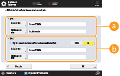 Jos haluat toimialueen nimen olevan eri kuin IPv4:lle, valitse <Toimialueen nimi> ja kirjoita toimialueen nimi, johon laite kuuluu, käyttämällä aakkosnumeerisia merkkejä. (Esimerkki: "esimerkki.fi").