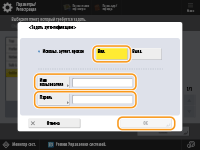 Нажмите эту клавишу, чтобы задать сведения для аутентификации при использовании функции аутентификации прокси-сервера. Нажмите <Вкл.> на отображаемом экране, введите имя пользователя и пароль для аутентификацию прокси-сервера и нажмите <OK>.