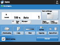 (Inställningar/Registrering) för att visa skärmbilden <Inställningar/Registrering>. Tryck på den här knappen först för att göra förändringar för varje inställning, som t.ex. pappersinställningar, visningsinställningar och nätverksinställningar. På den här skärmbilden kan du också registrera mottagare, som t.ex. e-postadresser och faxnummer.