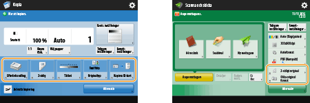 Du kan ändra vilka inställningsknappar som visas på skärmbilderna med grundläggande funktioner (för kopiering, fax och scanning). Du kan även visa en annan grundläggande funktionsskärmbild anpassad för varje inloggad användare.