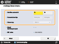 Som generell regel, tryck på <På> i <Identifiera automatiskt>. Kommunikationssystem och Ethernet-typ känns av och ställs in automatiskt.