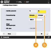 Välj <10BASE-T>, <100BASE-TX> eller <1000BASE-T> i <Ethernet-typ>.