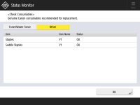 Press  (Status Monitor)  <Consumables/Others>  <Check Consumables>.