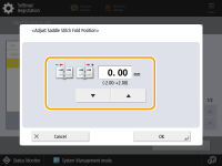 Press  (Settings/Registration)  <Adjustment/Maintenance> <Adjust Action> <Adjust Saddle Stitch Fold Position>.