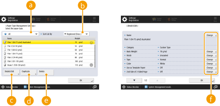 When you register the settings for the custom paper type, make sure to change its name. You cannot change the settings of the default paper types registered in the machine. |