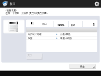 以等同复印倍率复印到与原稿尺寸相同的纸张时,所复印图像的边缘可能会略微缺失。为防止出现此情况,请按<复印倍率> <匹配页面尺寸>缩小图像尺寸以获得缺失的图像边缘。如果选择<匹配页面尺寸>,<位置移动>会自动设为<Center>。 使用“自动复印比例设置”时无法扫描高透明度原稿,例如透明胶片。而采用“预置缩放”或“按百分比缩放”模式时情况则恰好相反。 若设置<自动>,必须手动选择纸张尺寸。如果未选择纸张尺寸,自动设置复印倍率以匹配纸盒1中添加的纸张尺寸。 配置<扫描后存储>中的设置时将文档存储在“存储箱”中时,不能指定<匹配页面尺寸>。 |