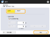 当选择<全部页>时,机器的计数器将计算设定为复印件的样品数量。