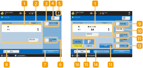 显示设置状态,如用于打印的纸张尺寸和打印份数。确保确认相应设置以便正确打印。要更改设置,按显示部分下方的按钮。要更改打印份数,使用数字键输入份数。