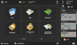 按 <首頁> 畫面及基本功能畫面顯示的 以便自訂畫面,例如重新排列按鈕或建立快速鍵。自訂觸控面板顯示幕![]() 您可以變更與畫面顯示有關的設定,例如開啟本機電源後立即顯示的畫面,以及是否對於剩餘紙張和碳粉顯示訊息。<顯示設定> 您可以設定經過一段時間不操作將顯示的畫面。<自動重設後的功能> |