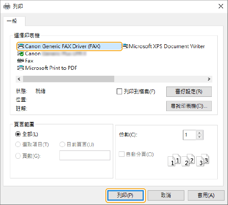 選擇機器然後按一下 [列印] 或 [確定]。