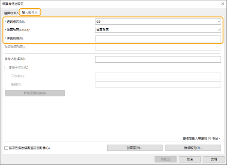 [* 傳真號碼]:輸入傳真號碼。