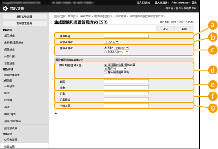 您可以在本機上產生金鑰和 CSR。您也可以在畫面上顯示 CSR 資料並且匯出成檔案。