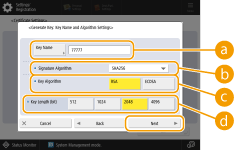 Select the key algorithm. If <RSA> is selected, <Key Length (bit)> is displayed as a setting item for . If <ECDSA> is selected, <Key Type> is displayed instead.