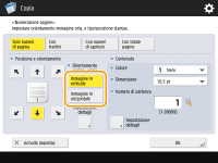 Come mostrato nelle illustrazioni sottostanti, se l'originale viene posizionato secondo l'orientamento verticale dal punto di vista di chi guarda, selezionare <Immagine in verticale>, se è posizionato secondo l'orientamento orizzontale, selezionare <Immagine in orizzontale>.