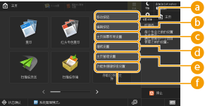 <限制功能显示>:选择要在<主页>屏幕上隐藏的功能或MEAP应用程序。