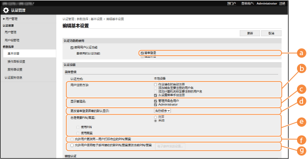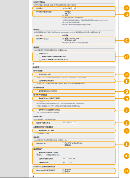 选择[使用用户认证功能]复选框,然后指定所需的设置。