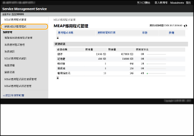 安裝完成後,會顯示 MEAP 應用程式管理畫面。