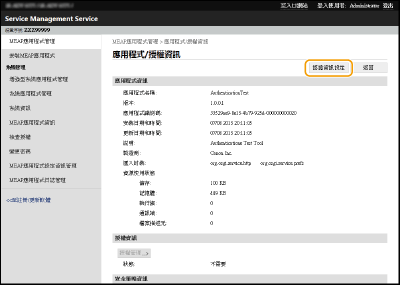 除了查看詳細資訊和變更設定以外,您還可以從遠端使用者介面使用 SMS 升級 MEAP 應用程式或解除安裝應用程式。