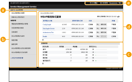 [系統管理]:顯示 MEAP 系統相關應用程式與資訊的管理頁面。