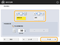 若要在雙面影印時,在背面疊加樣式影像,請設定 <反面>。若要疊加和正面相同的樣式影像,請按下 <與正面相同>。若要疊加和正面不同的樣式影像,請按下 <設定>,並前進至步驟 5。