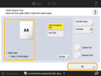 檢查紙張尺寸和紙張類型,並且按 <確定>。