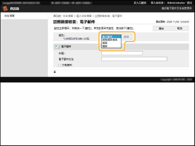 5 | 按一下 [註冊新接收者...] 或 [註冊新群組...]。 |
