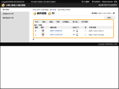 您可以使用遠端使用者介面來列印、傳送或刪除儲存在信箱中的檔案,或是暫時儲存在傳真/I-Fax 收件匣中的傳真和 I-fax。