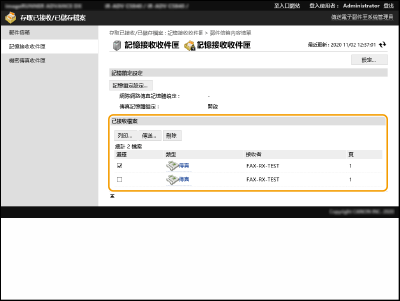 按一下步驟 3 中畫面上顯示的 [已分割的資料接收收件匣] 以顯示在接收時分割的 I-fax 清單。接收 I-Fax
