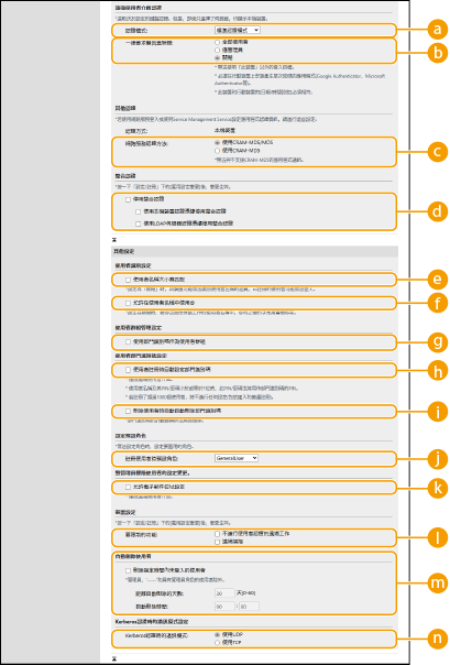 選擇遠端使用者介面登入要使用的認證模式。當選擇了 [來賓認證模式] 時,未註冊的使用者也可以透過按 [登入(訪客)] 登入。選擇 [管理員認證模式] 可只允許具有管理員權限的使用者登入。